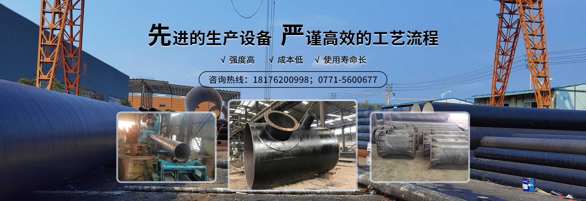 • 專業生產大口徑直縫鋼管、螺旋鋼管、鋼支撐、彎頭、三通、異徑管等一系列管件產品